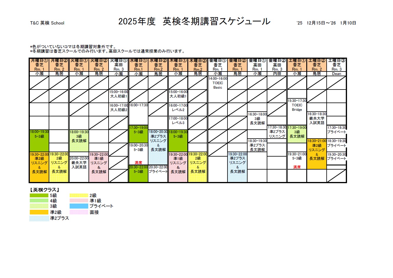 12/15(月)から冬期講習を始めます。今までの勉強の復習として受けていただいても良いですし、1月に英検を受ける方はラストスパートとして受講して下さい。